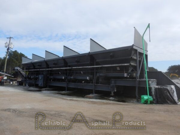 - Astec Portable Two bin Recycle system 8×14 bin openings 36’’ feeders. 4′ x 10′ DD screen 36’’ folding scale conveyor